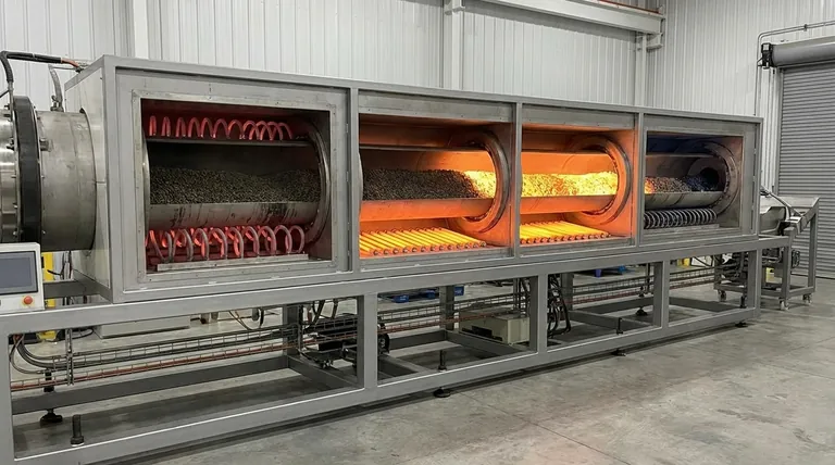 Chaque groupe d'éléments chauffants correspond à une étape spécifique du processus, telle que le séchage, le préchauffage, la calcination ou le refroidissement. À mesure que le matériau avance dans le tube incliné et rotatif, il entre successivement dans des zones plus chaudes.