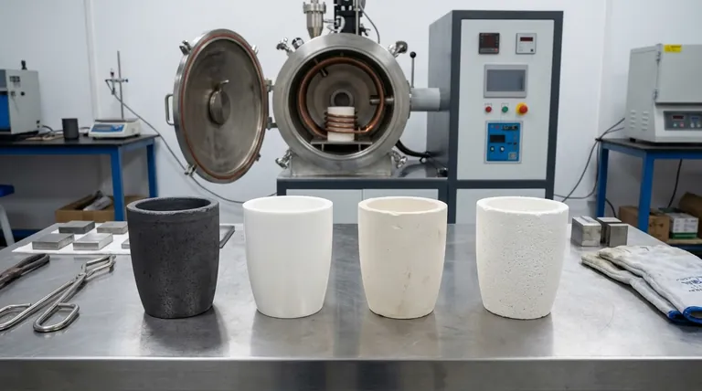 Le choix d'un matériau de creuset n'est pas une simple préférence ; c'est une décision d'ingénierie critique. Le bon matériau doit rester chimiquement inerte avec le métal en fusion à des températures extrêmes et sous vide pour éviter la contamination et assurer l'intégrité de la pièce coulée et du creuset.